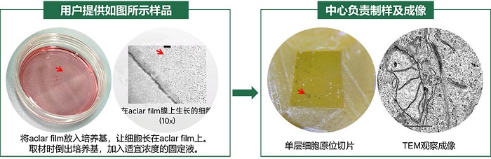 注:用户将固定好的细胞送至电镜室,后续所有流程由电镜室负责完成,具体实验方案请提前与中心郭瑛琪老师沟通。