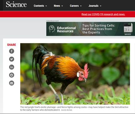 同时,Science杂志 发表了题为“The chicken first crossed the road in Southeast Asia, ‘landmark’ gene study finds”的点评文章,系统介绍了该研究成果(https://www.sciencemag.org/news/2020/06/chicken-first-crossed-road-southeast-asia-landmark-gene-study-finds)。