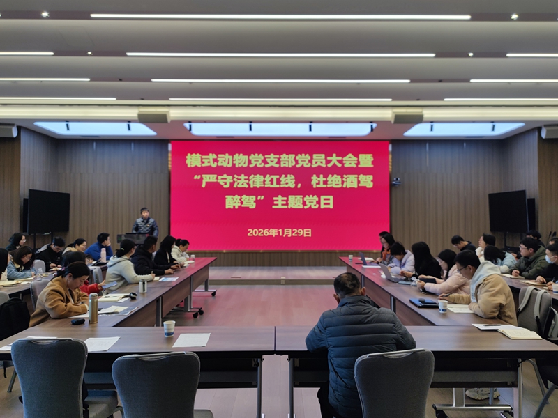 1月29日,中国科学院昆明动物研究所模式动物党支部召开支部党员大会暨“严守法律红线,杜绝酒驾醉驾”主题党日活动,支部党员、发展对象、积极分子及群众共51人参会。研究所纪委委员杨兴娄同志参加会议。会议由党支部书记吕龙宝主持。