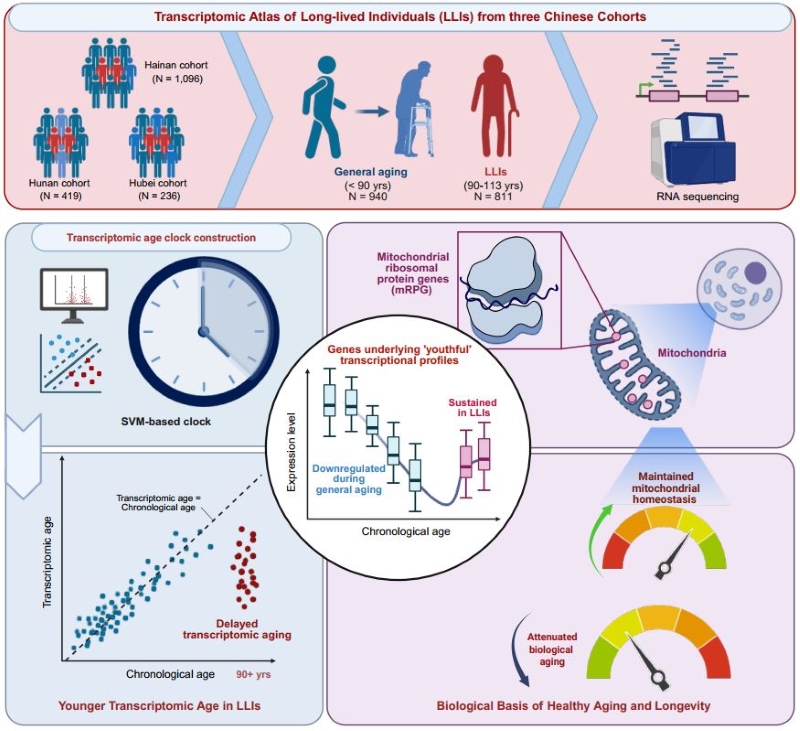 孔庆鹏团队牵头揭示线粒体核糖体基因表达维持是长寿人群年轻转录状态的关键标志
