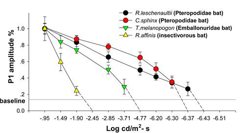 图3 不同蝙蝠的视觉阈值