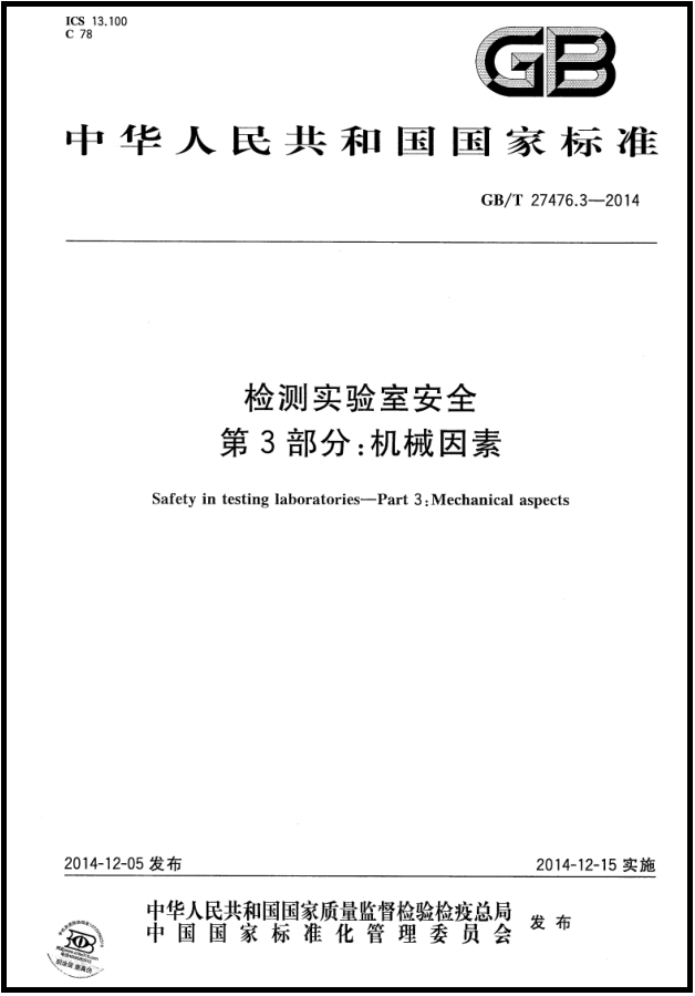 GBT 27476.3-2014 检测实验室安全 第3部分:机械因素.pdf
