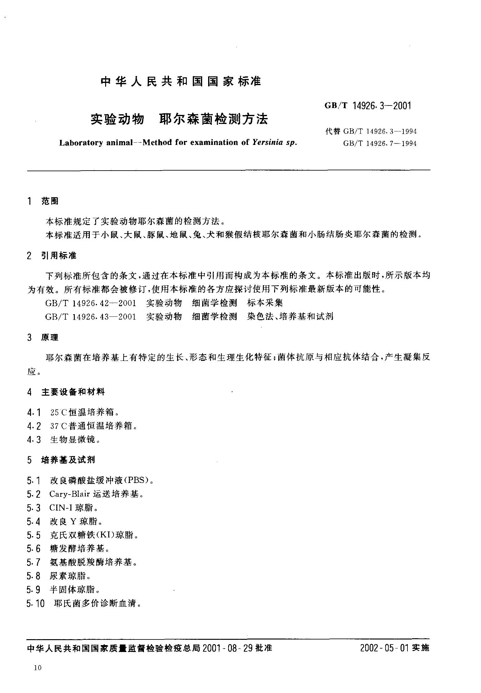 GB 实验动物 耶尔森菌检测方法