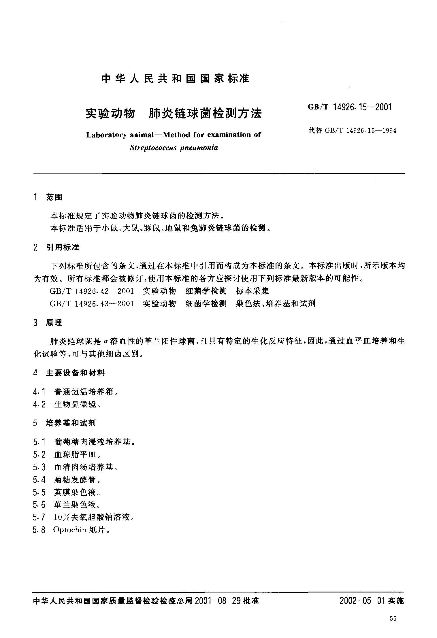 GBT 14926.15-2001实验动物 肺炎链球菌检测方法.pdf