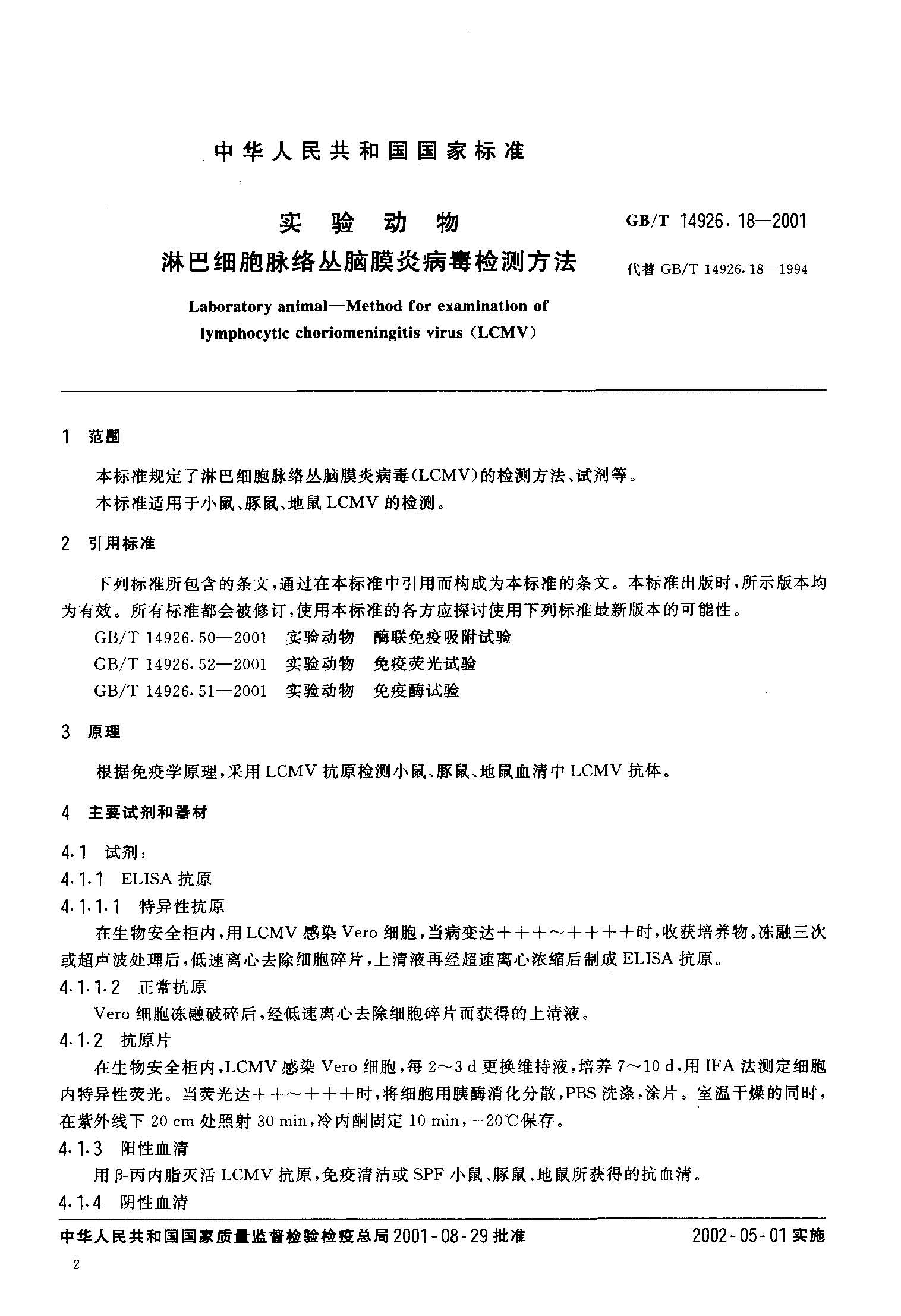 GB 实验动物 淋巴细胞脉络丛脑膜炎病毒检测方法