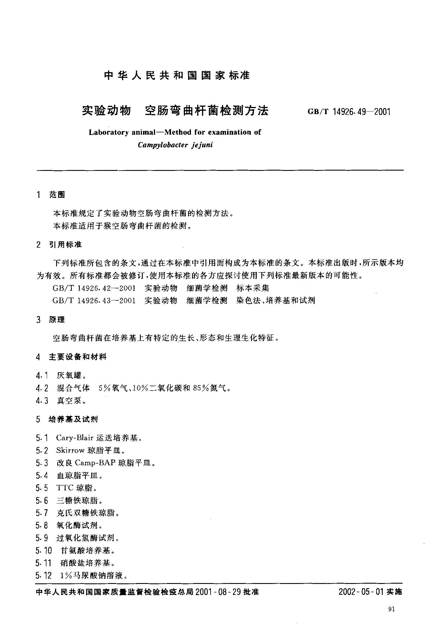GBT 14926.49-2001 实验动物 空肠弯曲杆菌检测方法.pdf