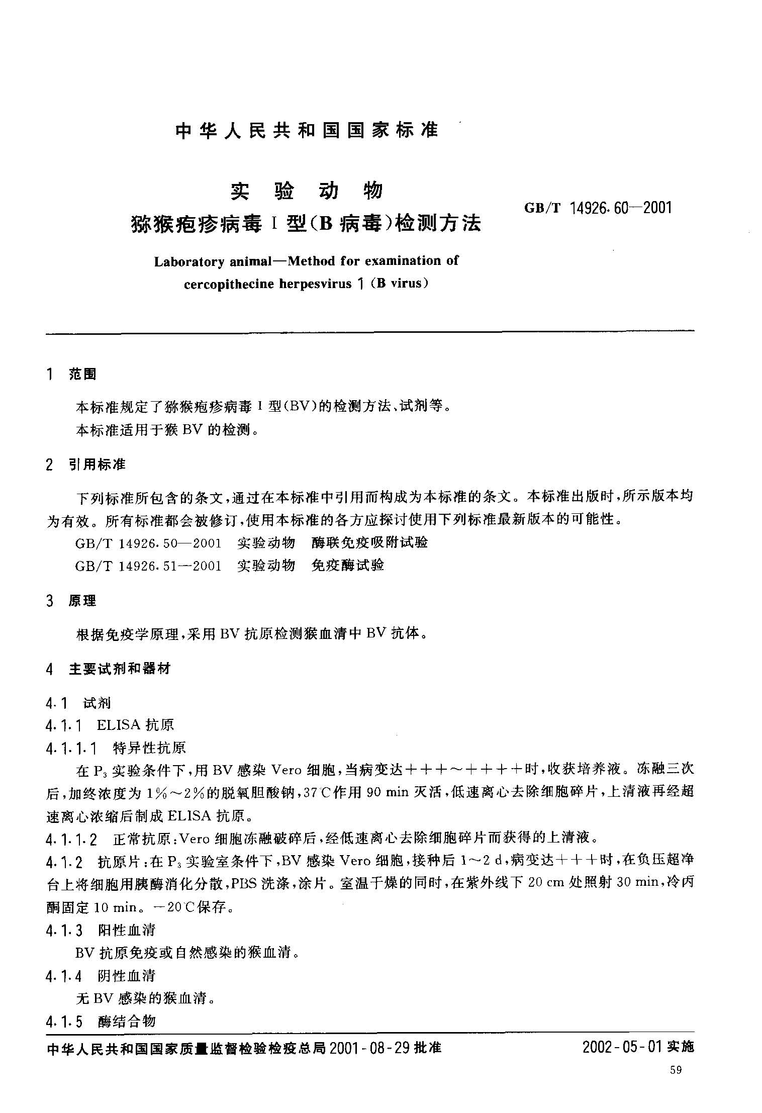 GB 实验动物 猕猴疱疹病毒Ⅰ型(B病毒)检测方法