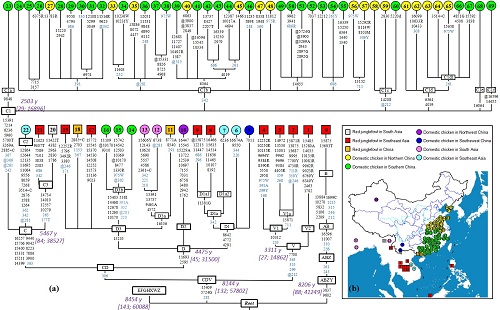 该研究成果以Was Chicken Domesticated in Northern China? New Evidence from Mitochondrial Genomes为题于12月7日在线发表在Science Bulletin上(https://doi.org/10.1016/j.scib.2017.12.004)。嘉应学院黄勋和副教授、云南大学硕士生吴亚江、云南农业大学苗永旺教授和中国科学院昆明动物研究所彭旻晟副研究员为共同第一作者。嘉应学院钟福生教授、华南农业大学张细权教授和中国科学院昆明动物研究所张亚平研究员为共同通讯作者。 相关工作得到广东省自然科学基金项目(2014A030307018)、广东省公益研究与能力建设项目(2015A020208020,2016A030303068)以及中国科学院东南亚生物多样性研究中心(Y4ZK111B01: 2015CASEABRI002)的资助。