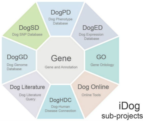 家犬毫无争议是人类最好的朋友之一,同时也是许多人类遗传病的基础研究模型。iDog 是第一个家犬与野生犬科动物整合性资源数据库,它不仅提供了丰富的组学数据,基因组拼接数据,基因表达谱数据,犬类疾病及相关表型信息,同时,iDog 数据库还整合了序列比对工具用于线上数据分析,以及基因组浏览器用于数据可视化。iDog的建立不仅有利于全球范围内犬科动物的研究,同时还为大量的爱狗人士提供了一个用户友好的界面查找相关宠物狗信息。