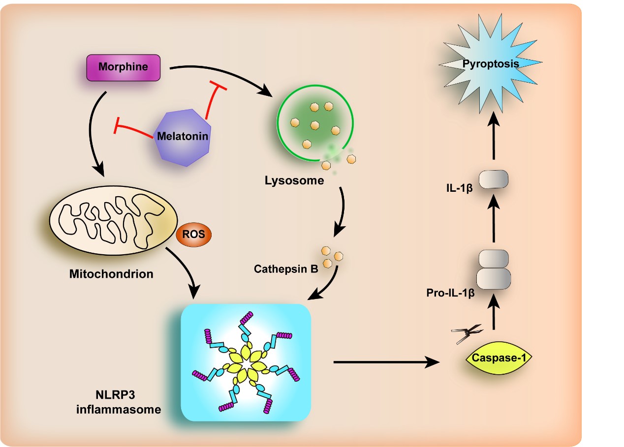 近期,国际知名期刊Redox Biology发表了中科院昆明动物研究所题为Melatonin alleviates morphine analgesic tolerance in mice by decreasing NLRP3 inflammasome activation的研究论文。该研究发现褪黑素可抑制吗啡诱导的NLRP3炎症小体激活,进而拮抗吗啡镇痛耐受,阐明了褪黑素-吗啡联合使用能提高吗啡镇痛效果,减轻长期吗啡使用引起镇痛耐受的分子机制。