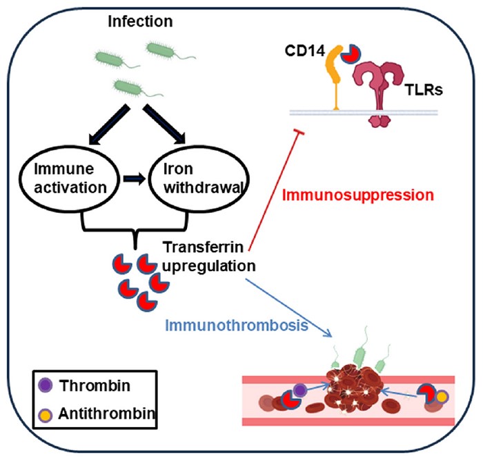 转铁蛋白负调控PRR信号通路并促进免疫血栓形成,促进肠道免疫耐受
