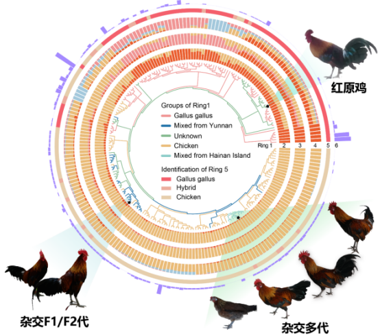 中国科学院昆明动物研究所联合泰国农业大学(Kasetsart University)等国内外研究团队,创新开发了一套用于区分野生近缘种与家养动物以及杂交个体的人工智能(深度学习)分析流程(图1)。在红原鸡与家鸡体系中,研究团队整合了1,960个样本(含164份红原鸡和1,796份家鸡)基因组数据,构建了基于285个SNP的识别模型,实现对红原鸡、家鸡以及...