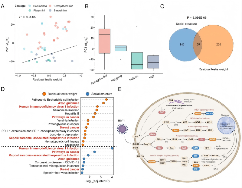 什么力量塑造了灵长类免疫系统的千差万别?传统观点倾向于强调生态位、群体规模和饮食。本研究通过系统发育最小二乘法分析发现社会结构复杂性和交配系统是解释免疫基因选择压力变异的最显著因素。饮食和群体规模的影响则不具有统计学显著性。